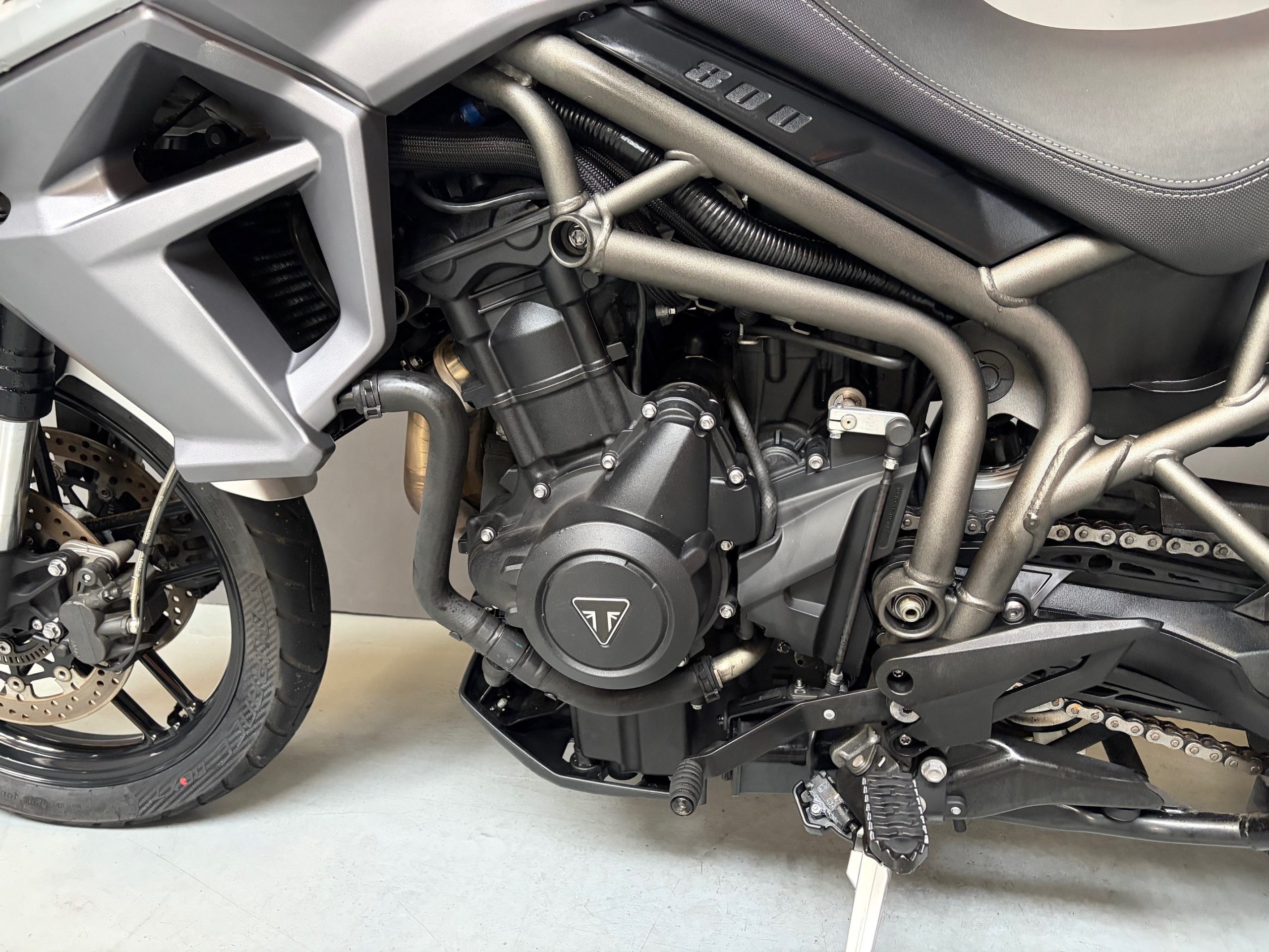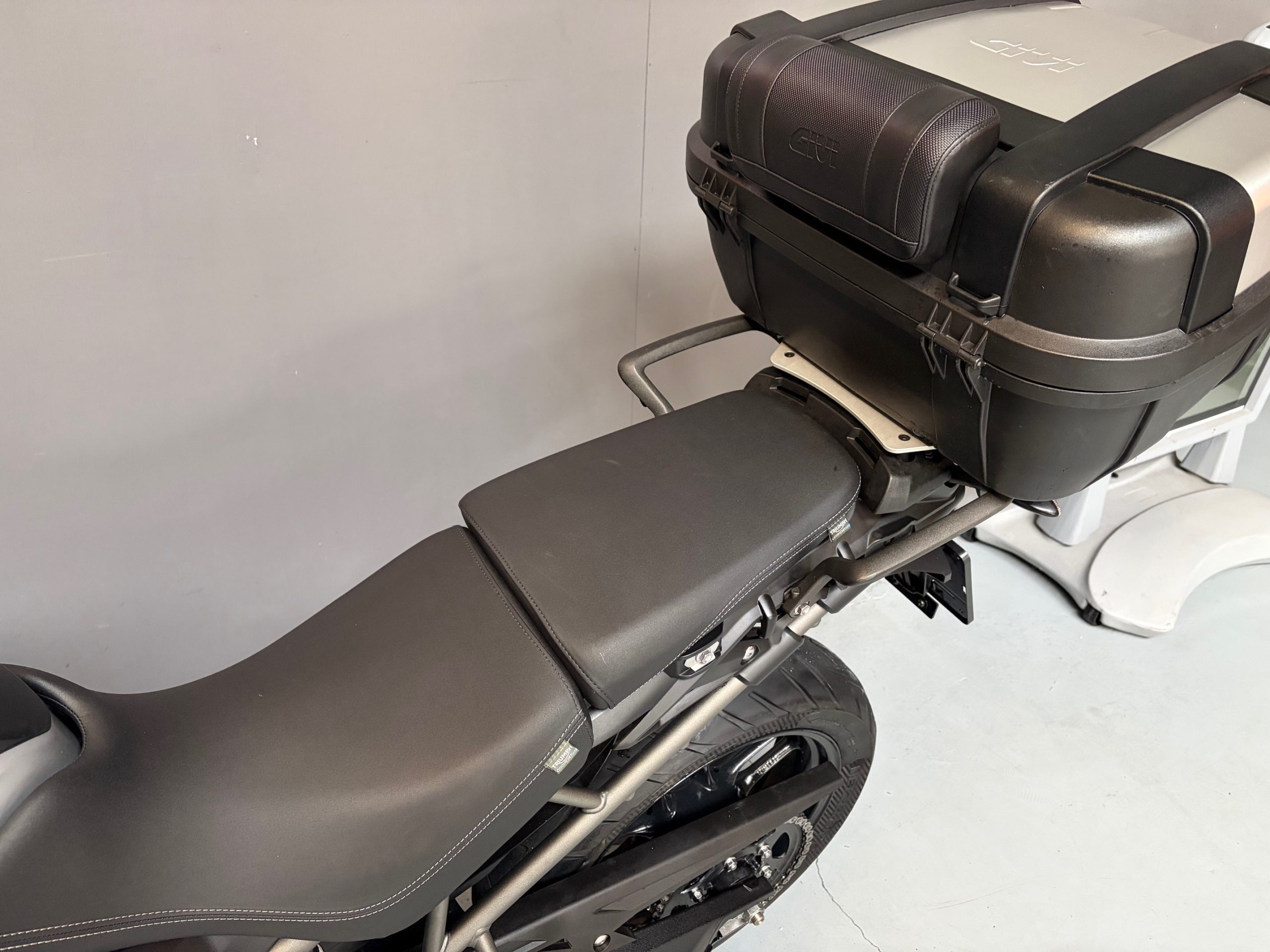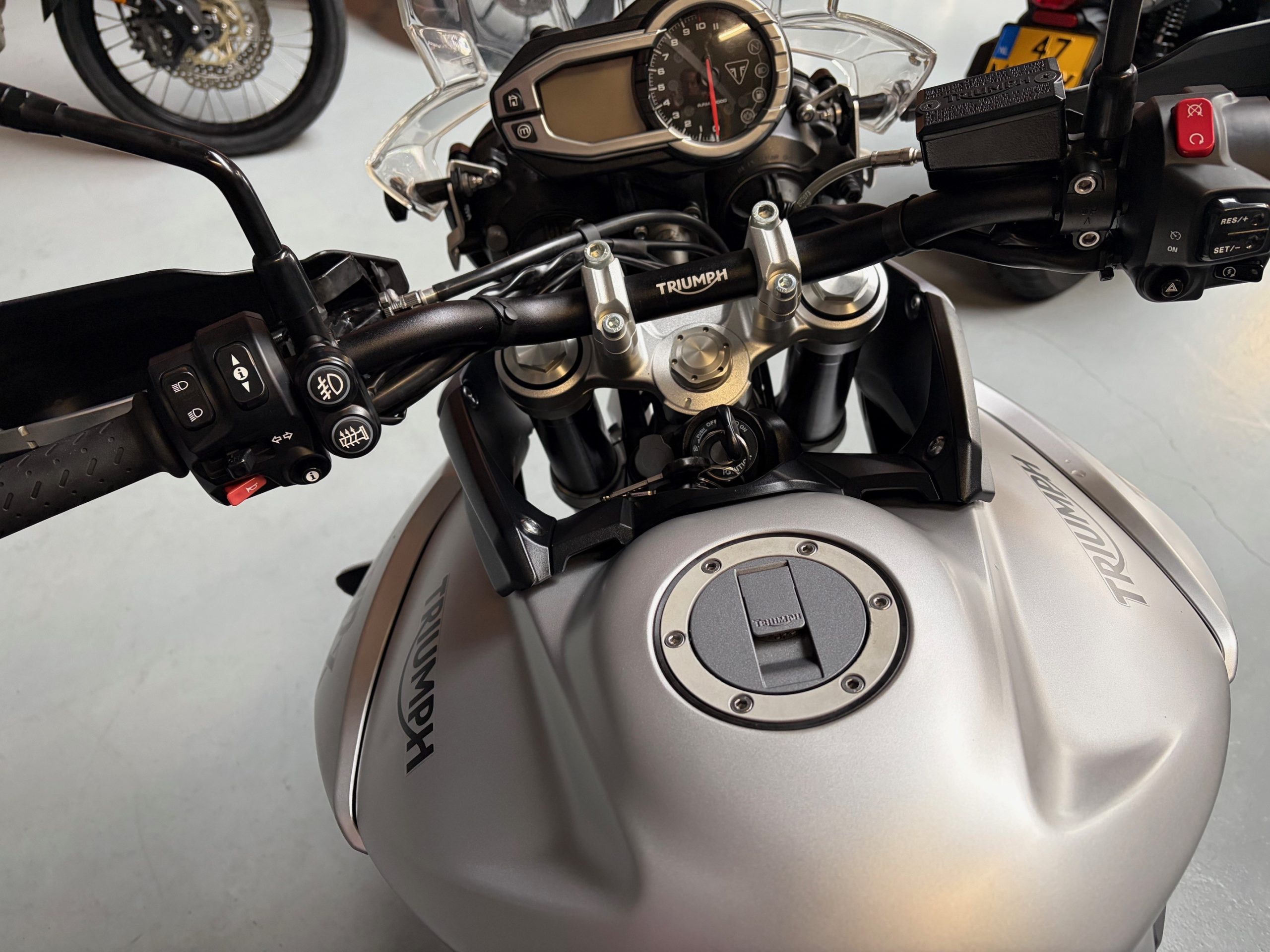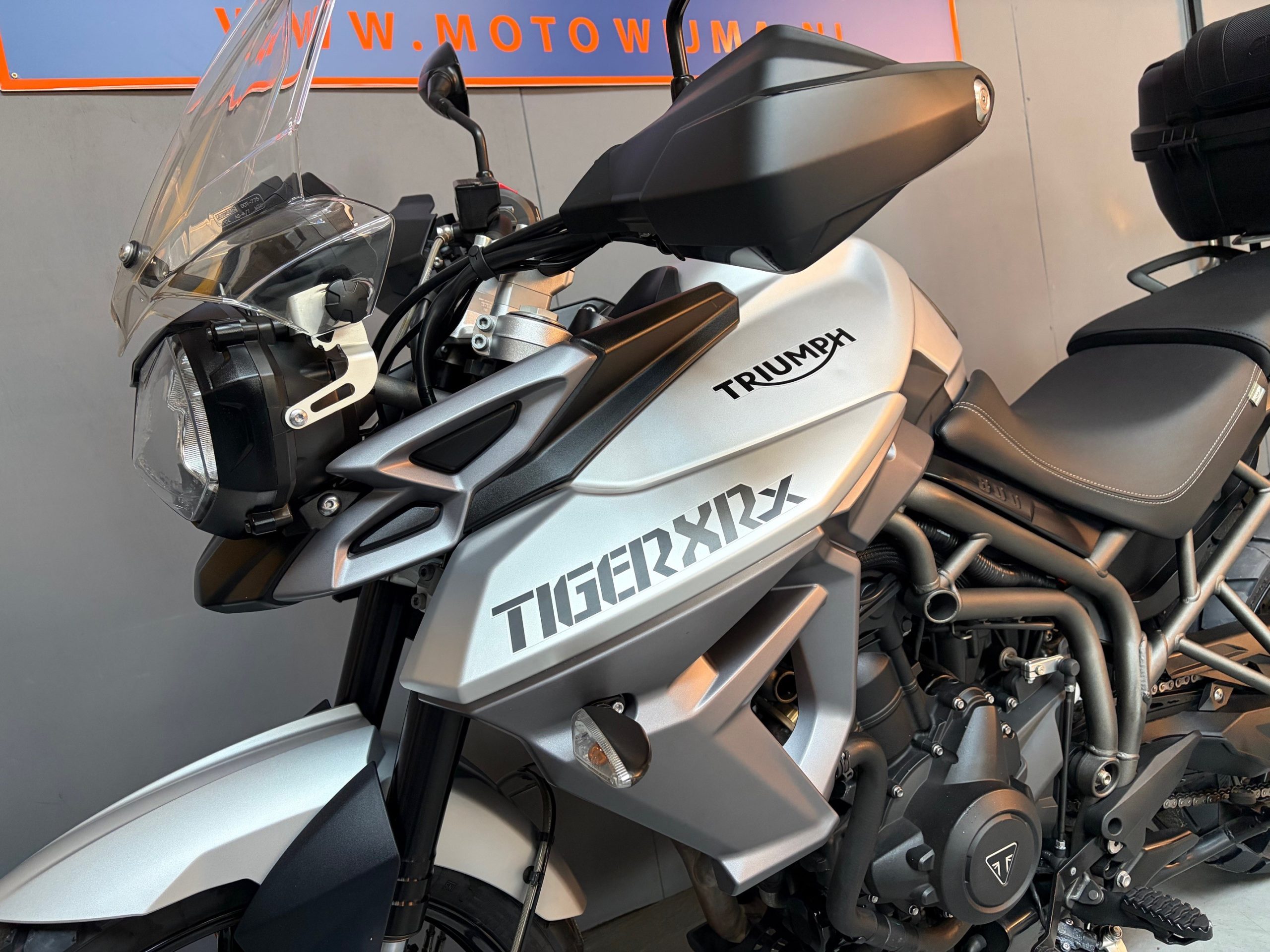 Schitterende mat grijze Tiger met o.a abs, middenbok, cruise control, handvatverwarming en topkoffer.